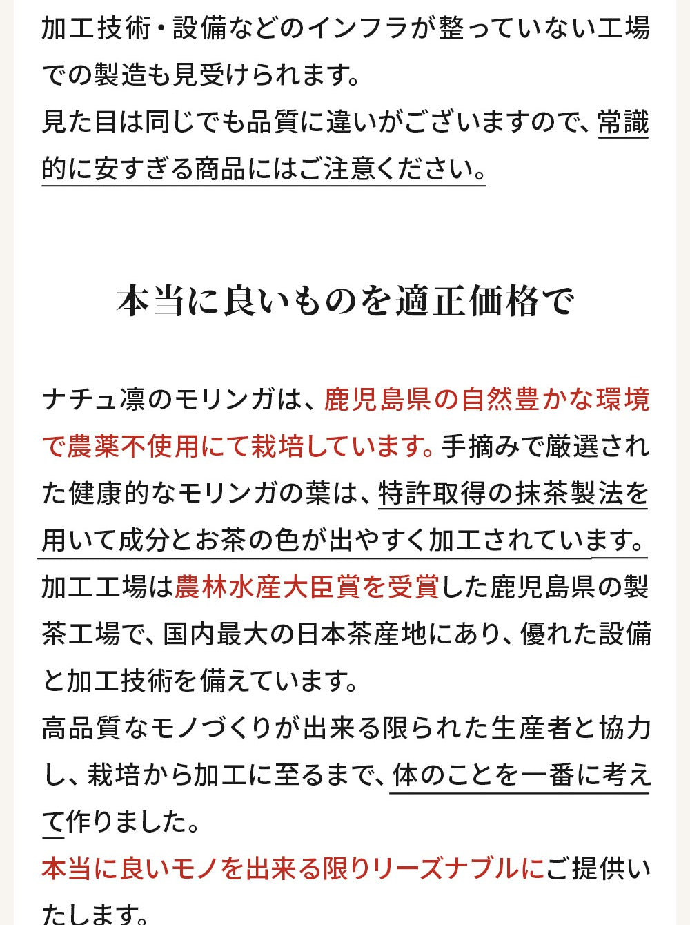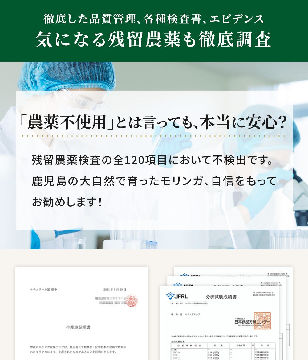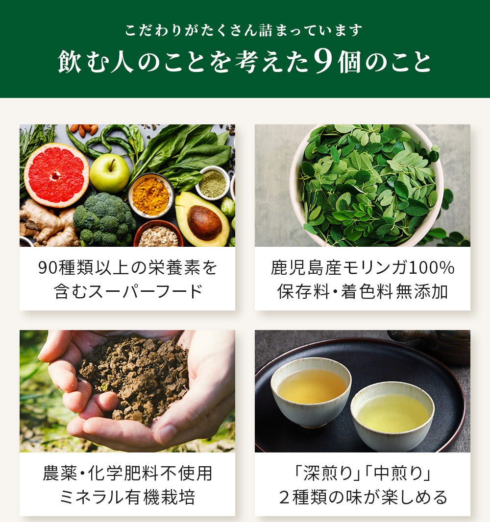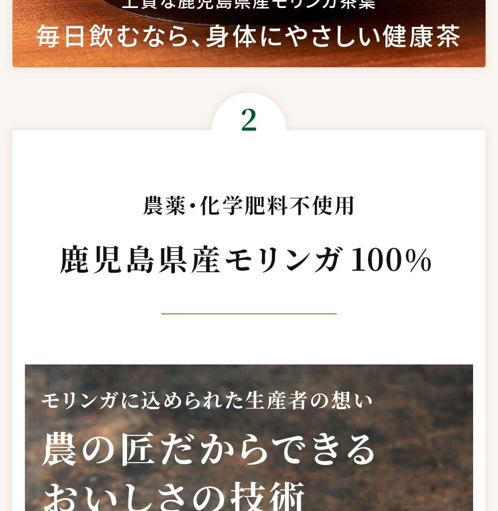 ・スーパーフードの鹿児島県産モリンガのみを100%使用
