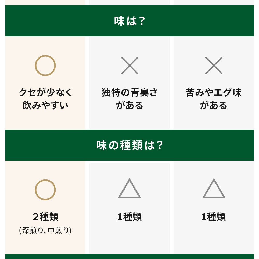 赤ラベルの方(深煎り)は、香ばしくてコーン茶や麦茶のような味、白ラベルの方(中煎り)は、色が綺麗なグリーンで、香りは弱めでさっぱり飲めました。