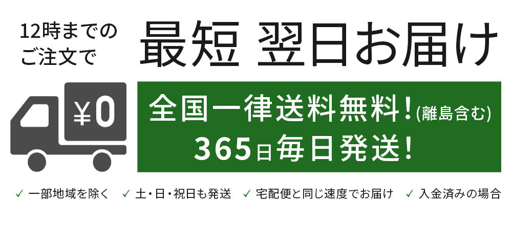 • 平日12時までのご注文で当日発送